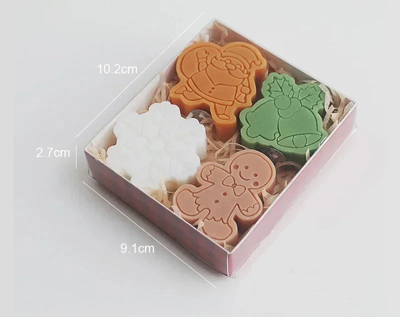 Cette bougie d'aromathérapie en cire de soja offre un design de Noël (bonhomme de neige, pain d'épices artisanal). La cire de soja fait main parfum poire freesia crée une ambiance festive et relaxante. Deux modèles disponibles : A (bonhomme de neige) ou B (pain d'épices). Coffret cadeau aromathérapie. Le design Noël artisanal s'adapte aux intérieurs festifs, chaleureux ou naturels. Idéale pour Noël, cadeau, aromathérapie, décoration maison ou ambiance recherchant bien-être festif et parfum délicat.