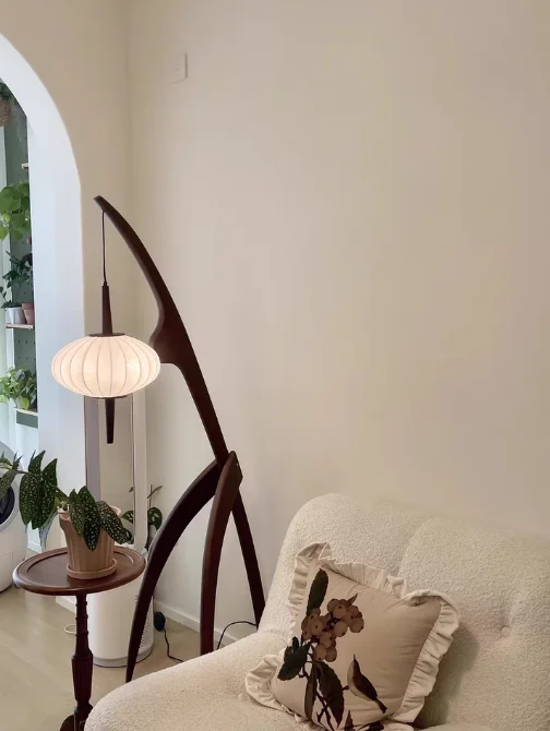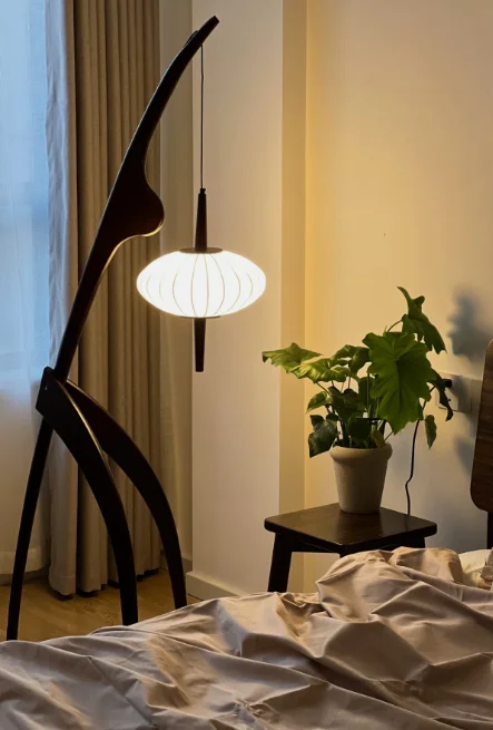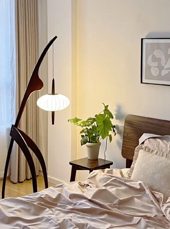 Lampadaire d'exception en bois massif incarnant la philosophie wabi-sabi chinoise, célébrant la beauté de l'imperfection et l'authenticité des matériaux naturels. Son abat-jour en tissu tressé artisanalement diffuse une lumière douce et contemplative, créant une ambiance sereine et apaisante. Sa structure sculptée apporte chaleur organique et caractère intemporel, s'intégrant harmonieusement dans les espaces contemporains recherchant connexion avec la nature.