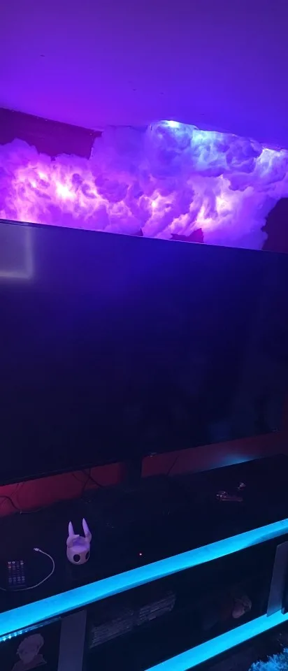 Le kit comprend des bandes LED RGB, de la laine pour créer l’effet de nuages, et des surfaces adhésives pour fixer les éléments au plafond. Vous avez le choix entre une longueur de 5 mètres ou 2 mètres.
