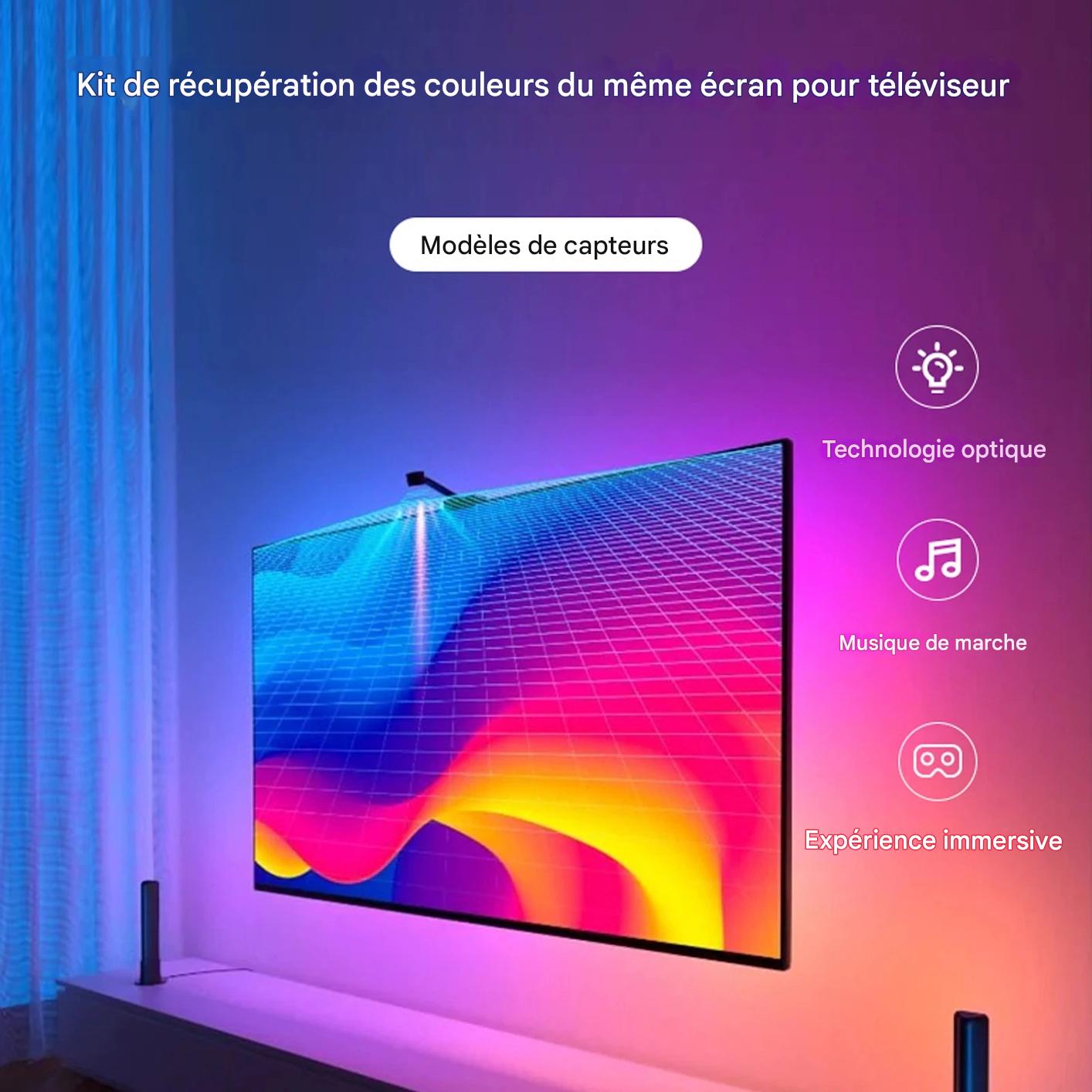 Le capteur AR détecte automatiquement les couleurs affichées sur votre écran TV et synchronise le bandeau LED en temps réel. Cela crée une expérience immersive spectaculaire où les couleurs de l'écran se
